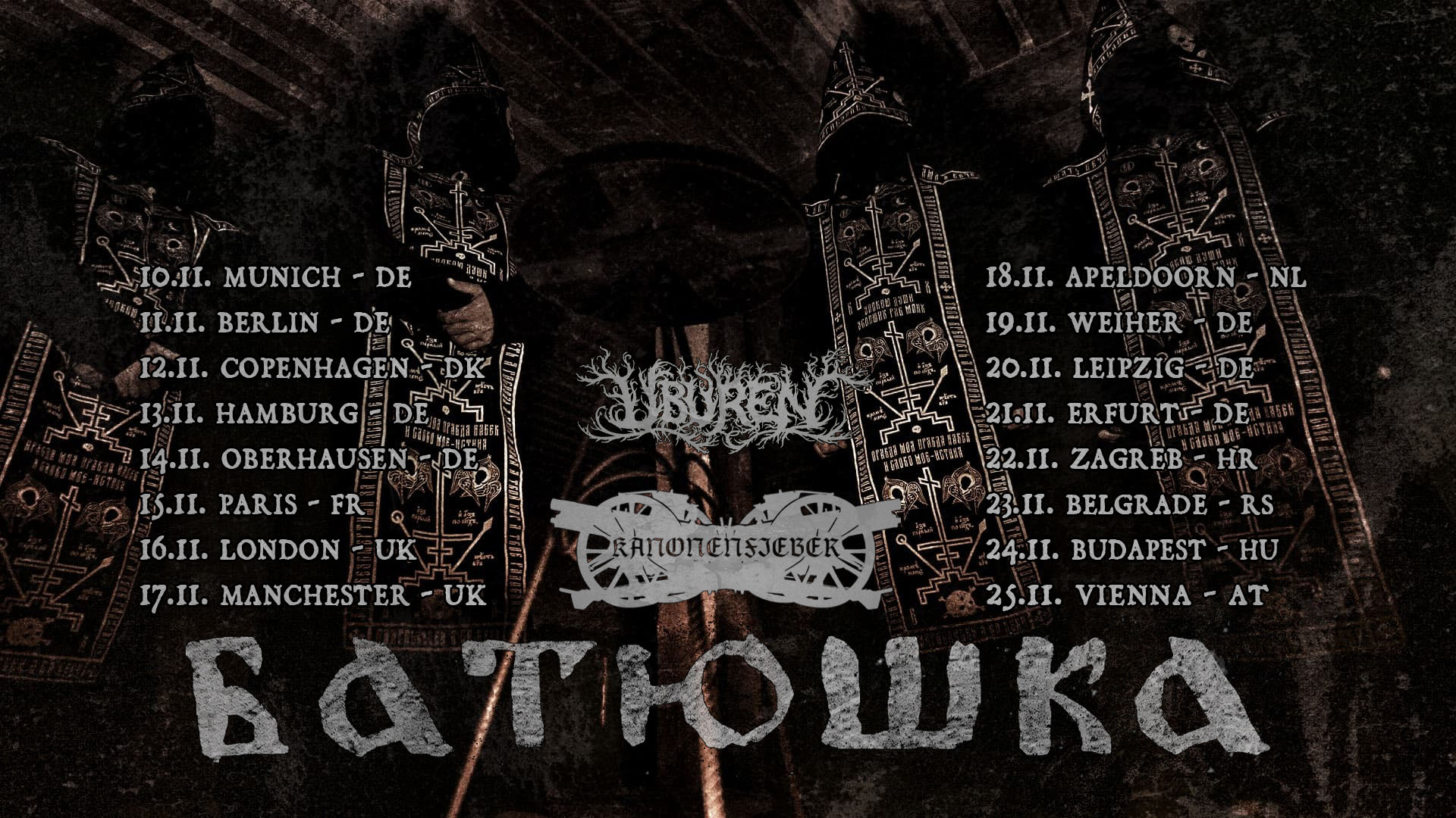 Wir sind erneut ausgerückt. Dieses Mal mit unseren Freunden von Batushka und Uburen. 16 Tage, 16 Shows.